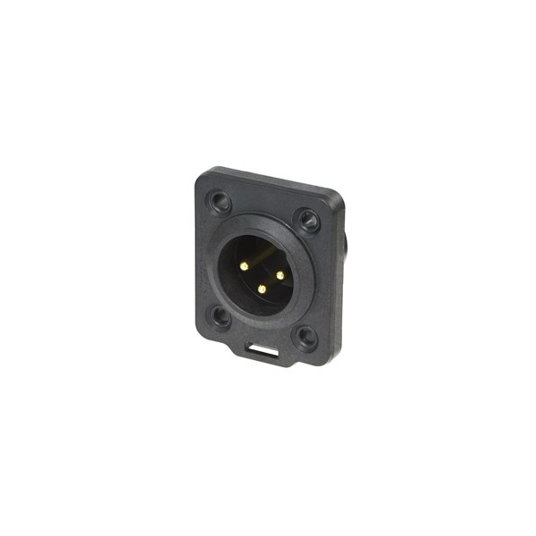 The NEUTRIK NC3MDX-TOP is a high-quality 3-pole male XLR chassis connector designed for reliable outdoor audio and signal connectivity in harsh environments. Featuring a heavy-duty sealed D-shape front-mount chassis with solder contacts, it uses high-impact UV-resistant polyamide construction with a TPE gasket to ensure long-lasting weatherproof performance and stable sealing when connected or disconnected.