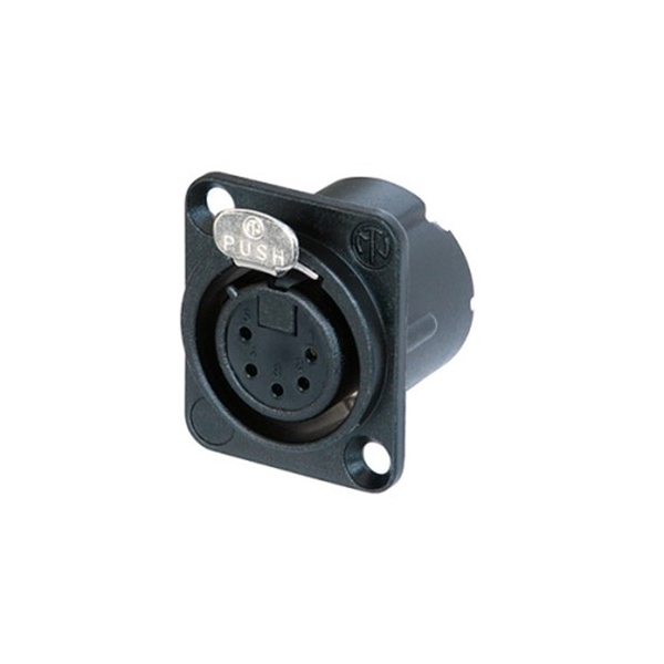 The NEUTRIK NC5FD-LX-B is a high-quality 5-pole female XLR chassis receptacle designed for professional audio, lighting control, and multi-channel signal applications requiring secure panel mounting and excellent shielding. Featuring a compact DLX all-metal D-size housing with an ingenious duplex ground contact, it delivers outstanding RF protection and electromagnetic shielding, while gold-plated brass contacts with solder cups and a solder barrier help ensure clean termination and reliable long-term performance.