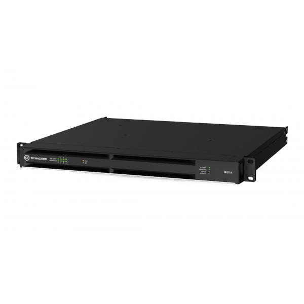 The DYNIX60.4 is a high-quality 4 channel DSP networked power amplifier designed for installed sound reinforcement distributed audio paging and performance systems. Measuring 483 x 44.1 x 447 mm 1U, it features a rugged rackmount chassis with supervised front to rear cooling and a 6 kW total output using powerTANK for Hi Z and Lo Z direct drive to ensure flexible system design pristine audio quality and reliable 24 7 operation.