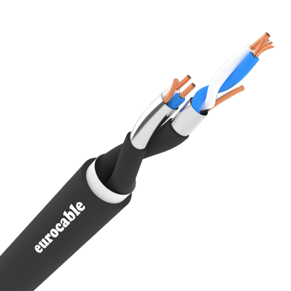 The LKMF02P is a high-quality 2-pair analog and digital audio/DMX cable designed for professional AV and lighting control systems. It features 4 flexible electrolytic tinned copper conductors (24 AWG) arranged in 2 shielded pairs for optimal signal integrity. With aluminum-polyester tape shielding and a drain wire, it ensures excellent protection against EMI and crosstalk, making it ideal for demanding environments such as studios, theatres, and live sound setups