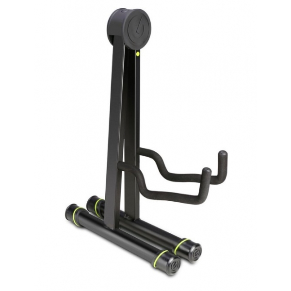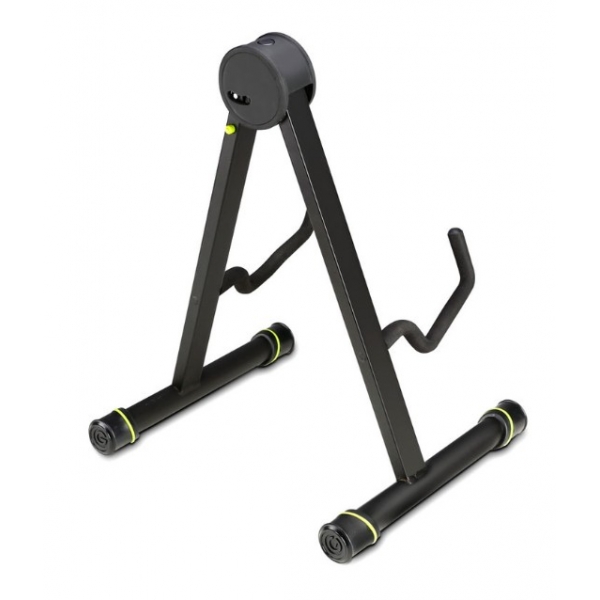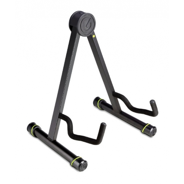 The GGSA01A is a steel A-frame guitar stand designed to support acoustic and classical guitars in a stable, space-saving format. Built from heavy-duty steel tubing with a black powder-coated finish, it includes a soft rubber backrest and TPU-padded support arms to help protect the instrument’s finish, plus nonslip rubber feet for secure placement on a range of floors.