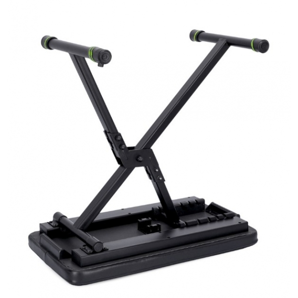Suitable for keyboard and piano players as well as other seated instrumentalists, it includes a folding hinge mechanism for flat transport and storage plus a screw-lock system to hold the selected height securely. An integrated leveler with KS VARI Foot 1 on the tubular base helps stabilise the bench on uneven floors, supporting up to 120 kg in a compact black finish.