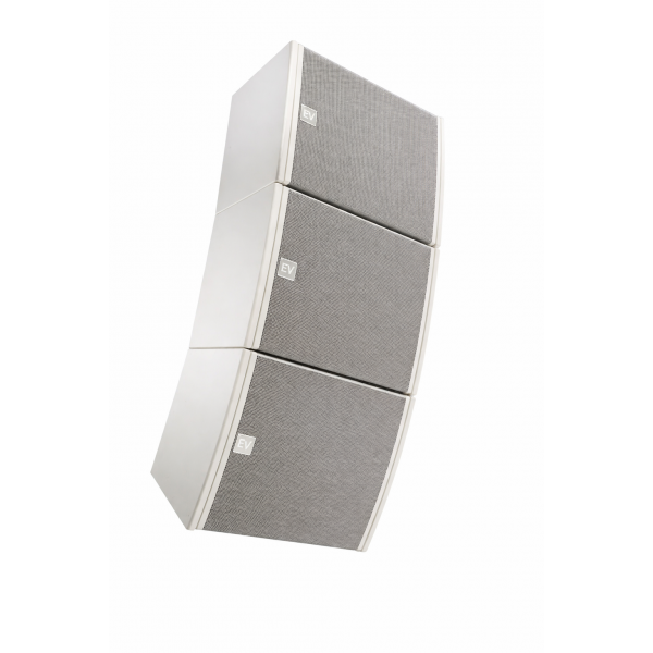 Ideal for medium to large venues requiring precise coverage it complies with EVA rigging practices and offers 90 degree horizontal by 6 degree vertical directivity 60Hz–19kHz response 104 dB sensitivity and 350W continuous 1400W peak power handling from a 16 ohm load with dual 4-contact Phoenix Euroblock connectors making it suitable for architecturally discreet arrays driven from a single amplifier channel and scalable with matching EVA subwoofers and grids.