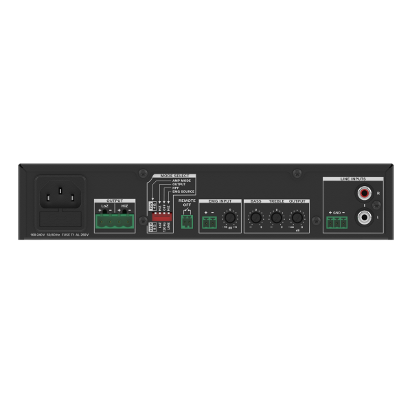 Ideal for background music and intelligible voice announcements in bars, restaurants, retail, education, houses of worship, museums, transport hubs, and conference venues, it complies with IEC Class I safety and offers EMG override, remote power standby, and protected rear-panel controls for secure, energy-efficient operation in professional environments.