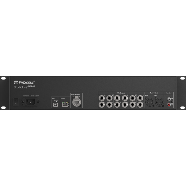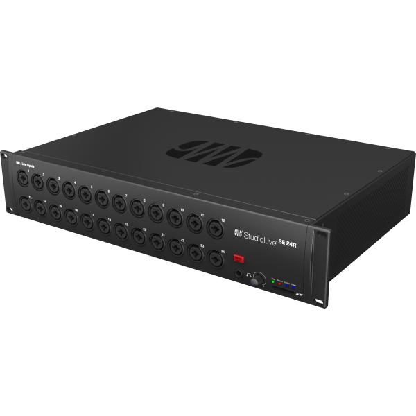 The PRE-SE24R is a high-quality rackmount digital mixer and remote I-O system designed for professional live sound, worship production, studio tracking, and AVB networked audio rigs that need powerful mixing in a compact rack. Measuring 3.5in x 19in x 12in (90mm x 483mm x 305mm), it features 24 high-headroom XMAX microphone preamps, studio-grade 24-bit converters with 115 dB dynamic range, and 32-bit floating-point internal processing to deliver clean gain structure, detailed audio, and responsive low-latency monitoring.