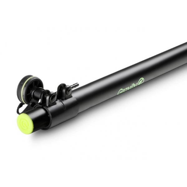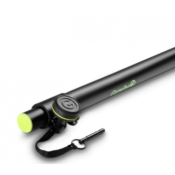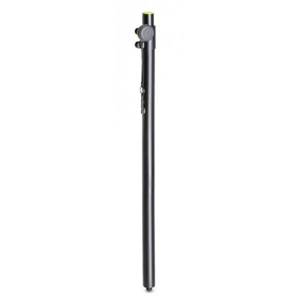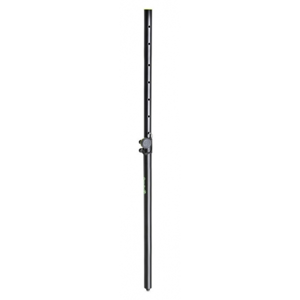 The GSP2342B is a 35 mm steel distance bar for mounting loudspeakers on subwoofers or speaker stands with an M20 threaded base. Adjustable from 1050 mm to 1800 mm, it uses a set screw with a safety split pin to lock the selected height.