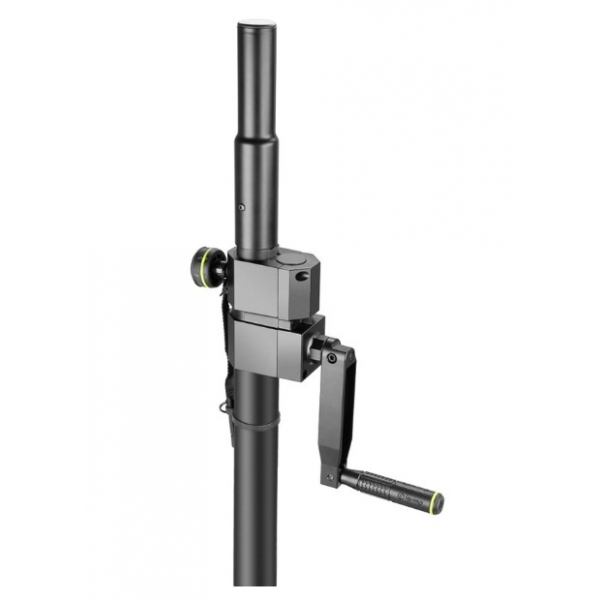 Ideal for portable PA systems, touring rigs, and fixed installations, it includes an M20 screw thread for a solid stand connection and a practical crank winding gear for easy, controlled raising and lowering of the speaker. TÜV/GS certified for added peace of mind, it supports up to 40 kg and includes a black ring pack with interchangeable rings for a clean, professional look on stage and in AV environments.