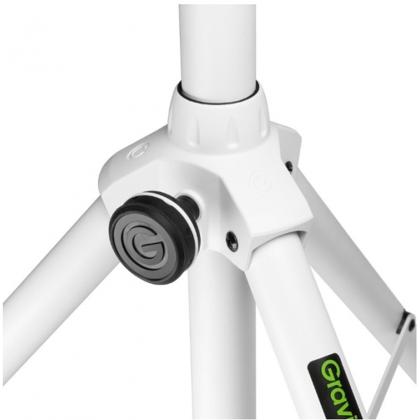The GSP5211W is an aluminium tripod speaker stand for supporting loudspeakers on a 35 mm pole mount. It adjusts from 1060 mm to 1950 mm and is finished in white powder-coated tubing for corrosion and wear resistance.